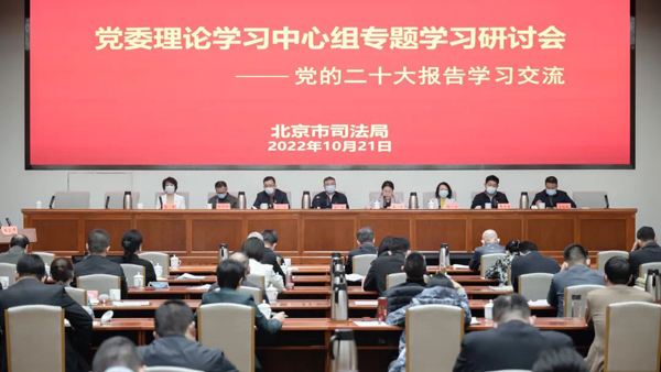 10月21日,北京市司法局召开学习宣传贯彻党的二十大精神专题研讨会,局党委班子成员,市(局)管二级巡视员,市委依法治市办秘书处,驻局纪检监察组,市局机关各处室、各直属单位副处职以上干部参加。会议由市司法局党委书记苗林主持。